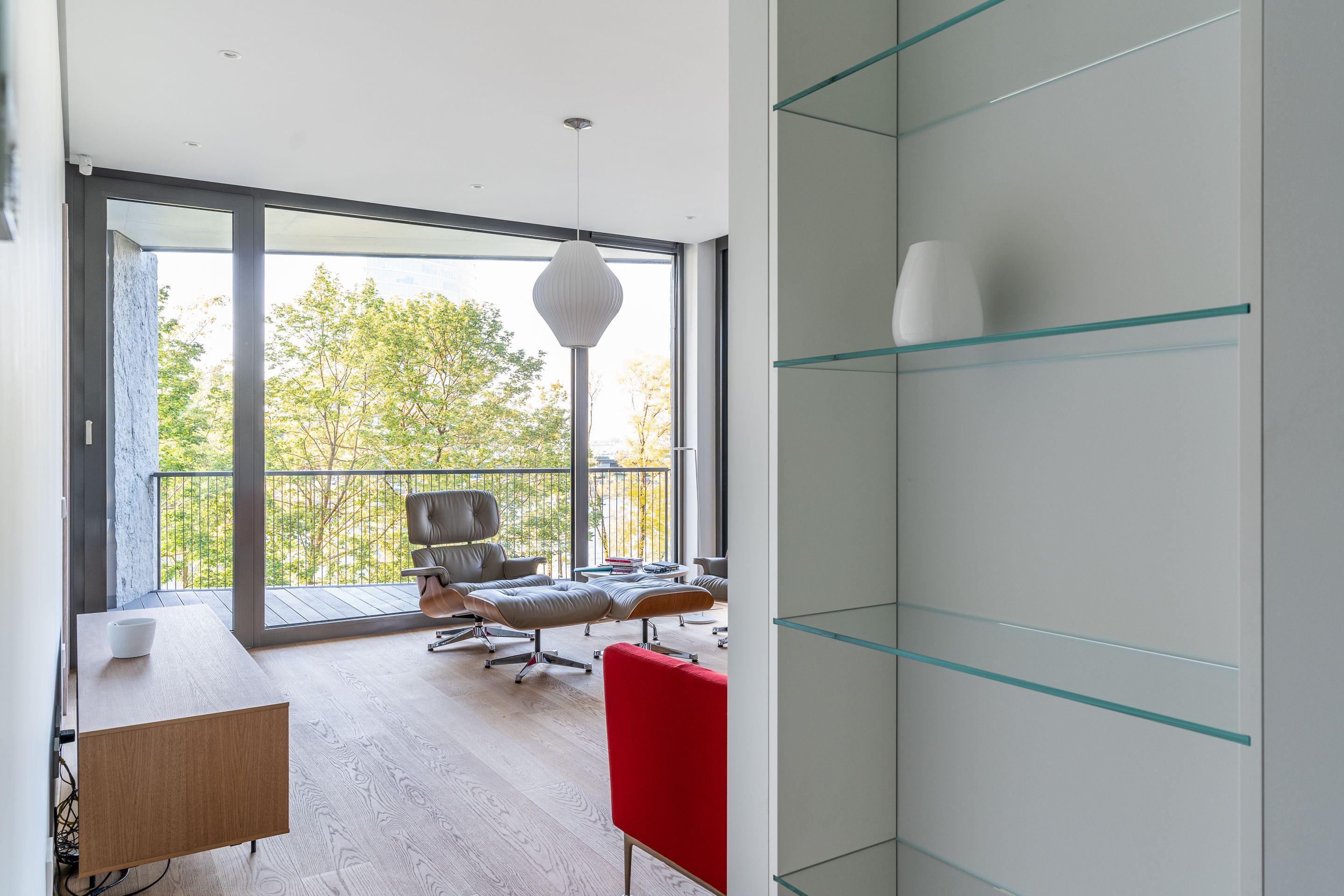 Virtuves iekārta dzīvoklim Pārdaugavā ar matēta REHAU akrila fasādēm un Calacatta Silva kvarca akmens darba virsmu, kā arī garderobes, priekšnama un saimniecības telpas mēbeles.