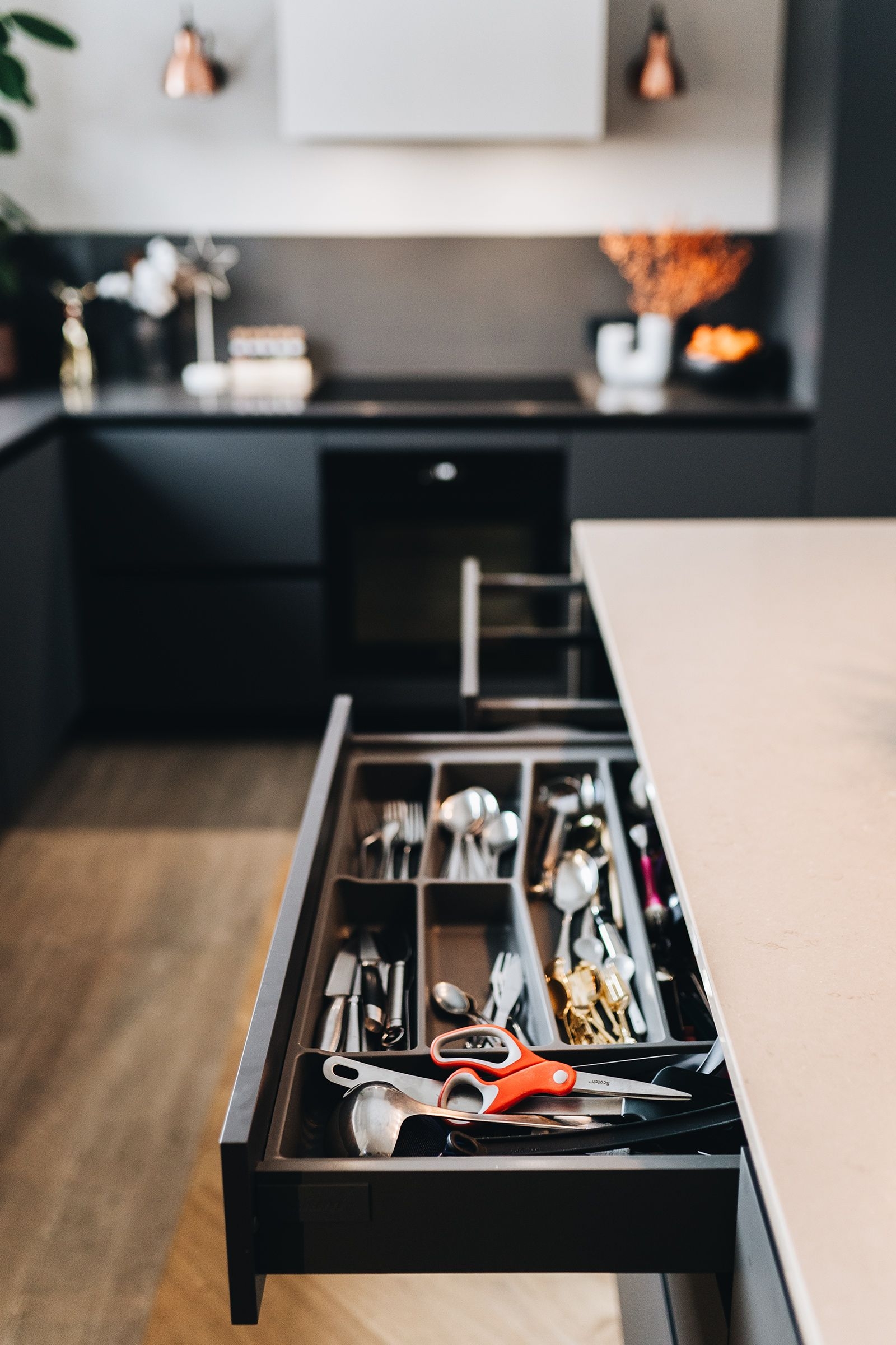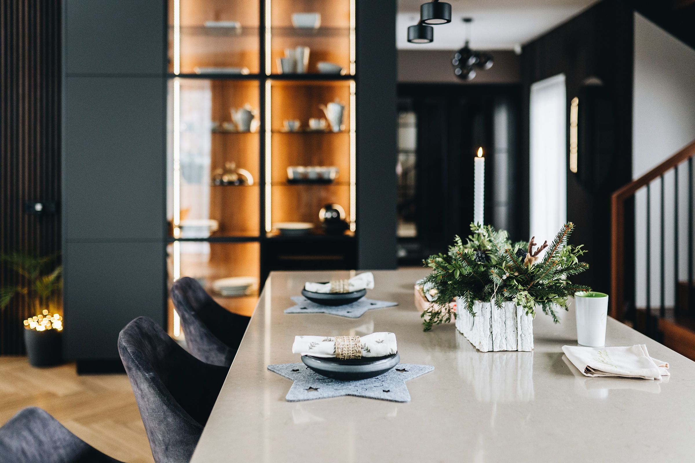 Virtuves un citu mēbeļu projekts, kas tika realizēts 2023. gadā pēc Ildzes Klēģeres (Blackberryblue) dizaina projekta. Mēbelēm tika izmantoti Egger Perfect Sense fasādes ar tonēta ozola akcenta izgaismotām vitrīnām. Darba virsma - matēts kvarca akmens Silestone Marengo ar pabūvējamo Franke akmens masas izlietni. Tējas/kafijas zonas REHAU rullo žalūziju durvis. #virtuvesdizains #virtuvespecpasutijuma #mebelespecpasutijuma