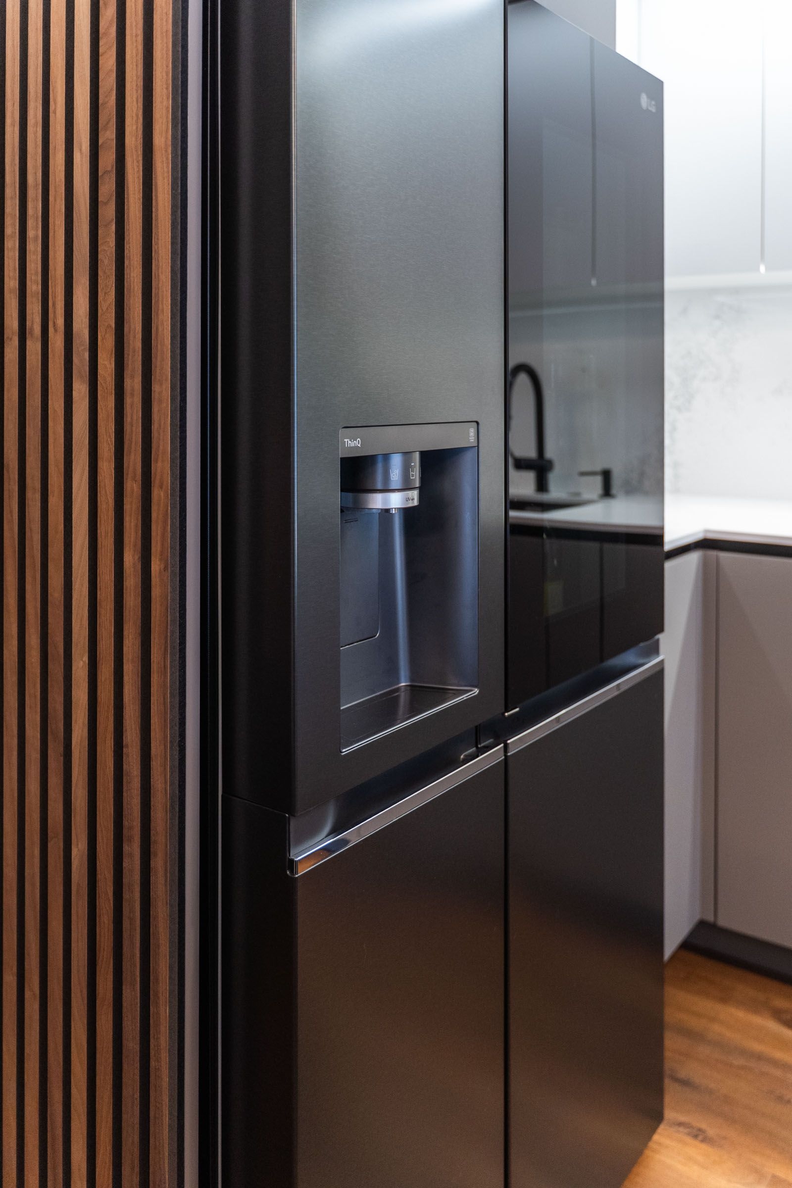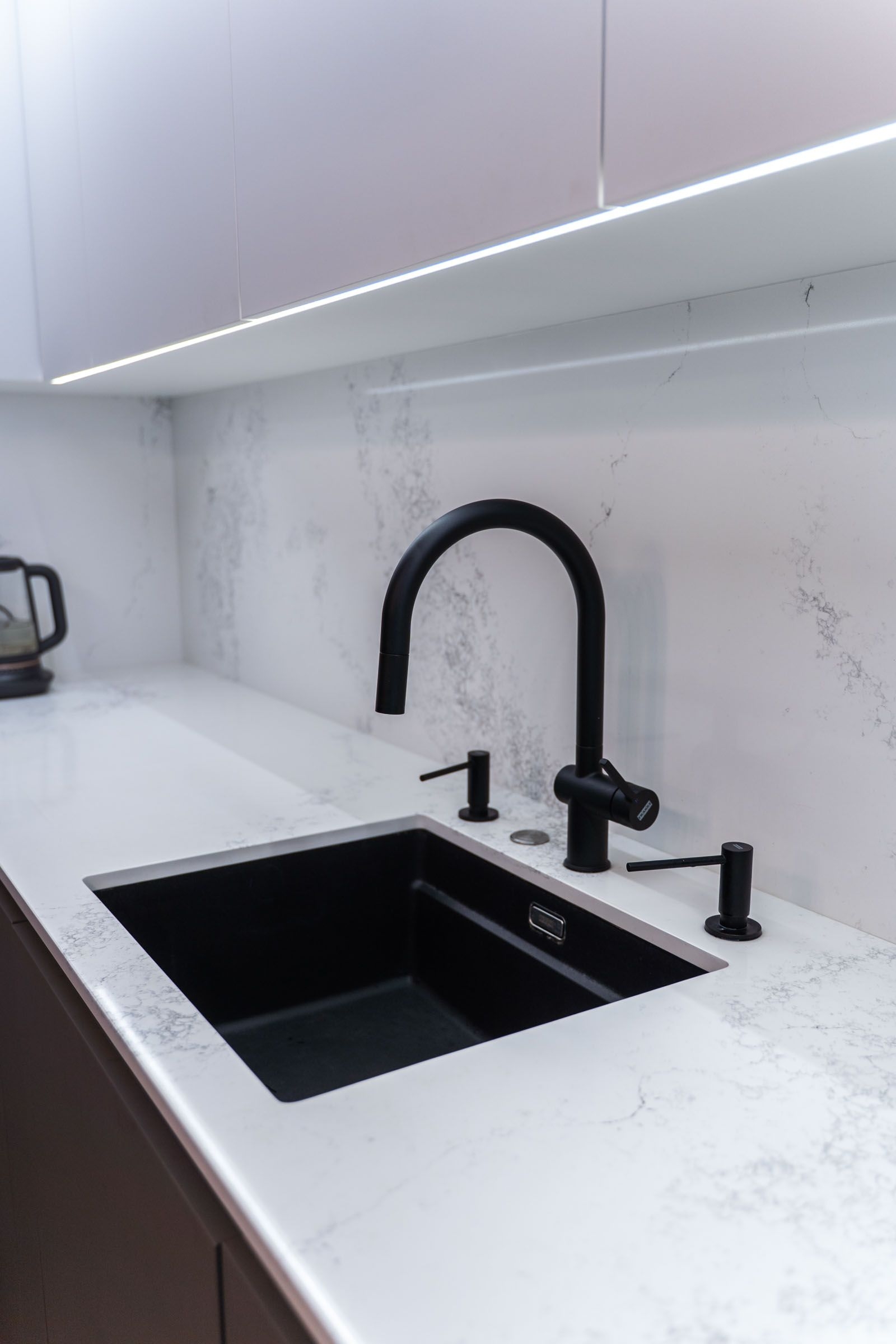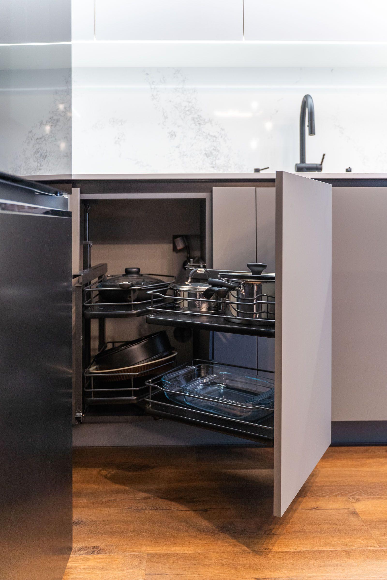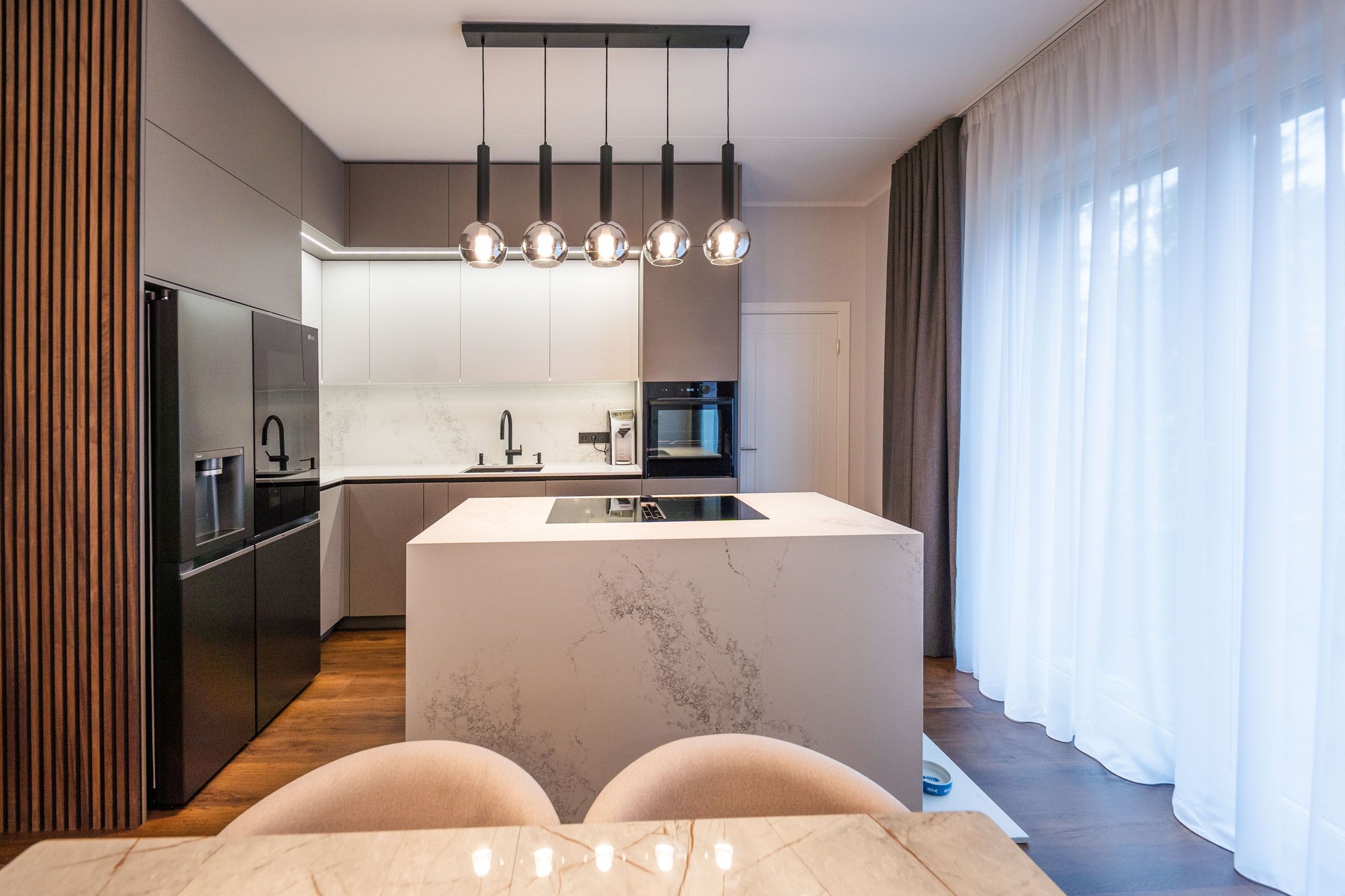 Virtuves mēbeles ar salu, kas izgatavotas Bonava projektā “Čiekuru mājas.” Virtuves fasādes veidotas no REHAU akrila, kas izceļas ar ideāli matētu virsmu un izteiksmīgu, mūsdienīgu estētiku. Kvarca akmens darba virsma un sienas panelis veido vienotu, vizuāli tīru kompozīciju, vienlaikus nodrošinot augstu izturību un praktiskumu ikdienas lietošanā. BLUM furnitūra un dažādas grozu sistēmas palīdz maksimāli efektīvi izmantot telpu un ērti piekļūt pat vistālākajam stūrim. Neff sadzīves tehnika nodrošina augstākās klases funkcionalitāti un komfortu, organiski iekļaujoties kopējā dizaina koncepcijā. #olivemebeles #bonava #ciekurumajas #rehau #neff #kvarcaakmens